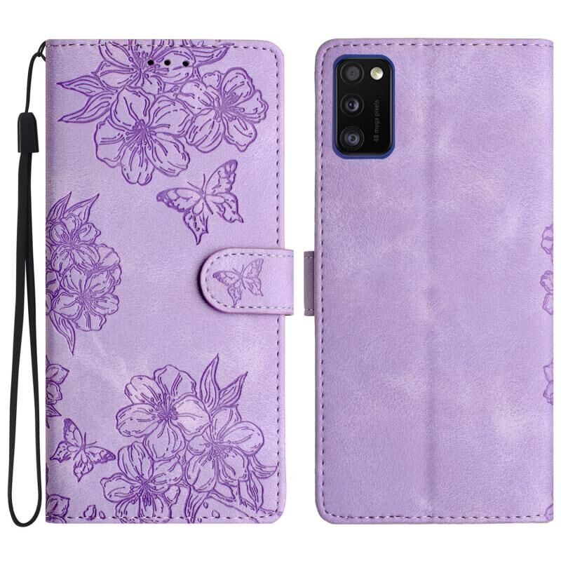 Θήκη κινητού τηλεφώνου Samsung Galaxy A41 Cherry Blossom Butterfly Skin Feel Embossed PU (Κόκκινη)