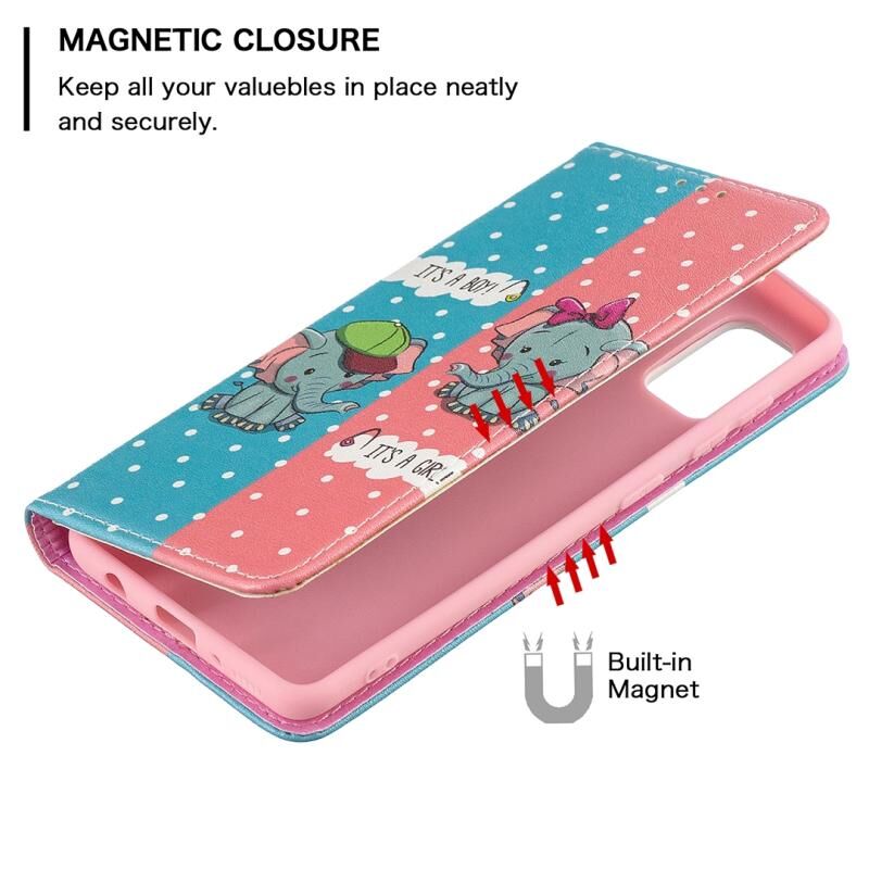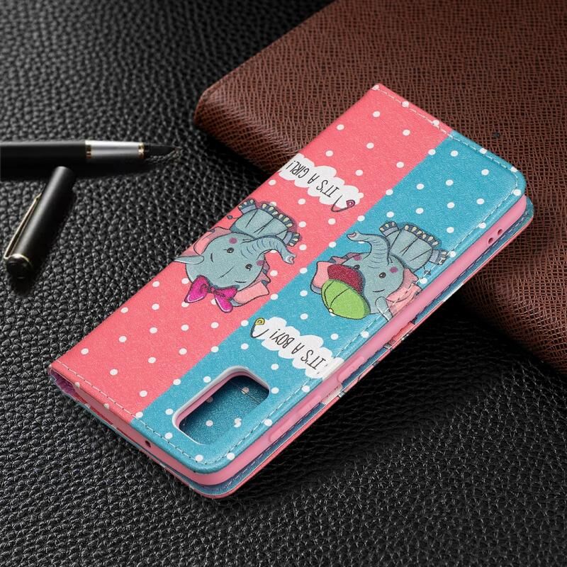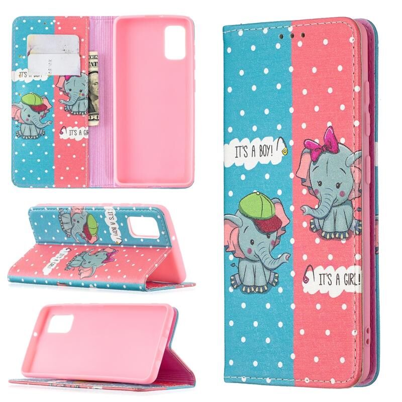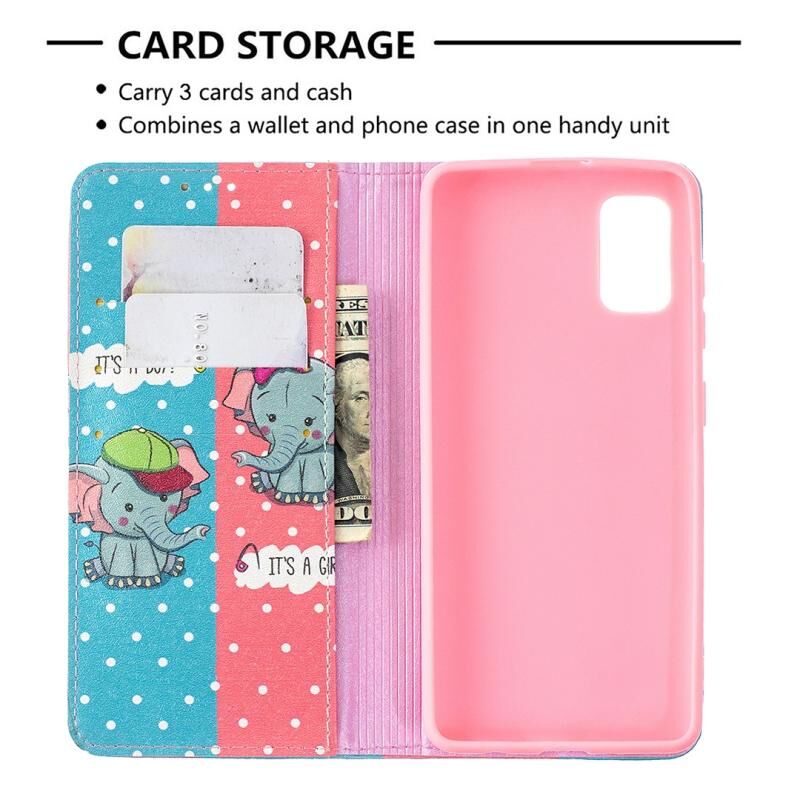 Θήκη Samsung Galaxy A41 με πολύχρωμο σχέδιο, αόρατο μαγνητικό, οριζόντιο flip από δερματίνη PU με βάση & θήκες για κάρτες & πορτοφόλι (Ελέφαντας)