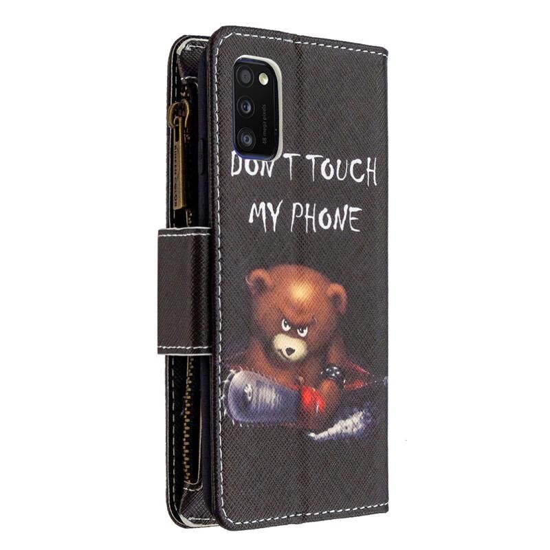 Θήκη Samsung Galaxy A41 Δερμάτινη Οριζόντια με Φερμουάρ, Πολύχρωμο Σχέδιο, με Θήκη & Θήκες Καρτών & Πορτοφόλι (Αρκούδα)