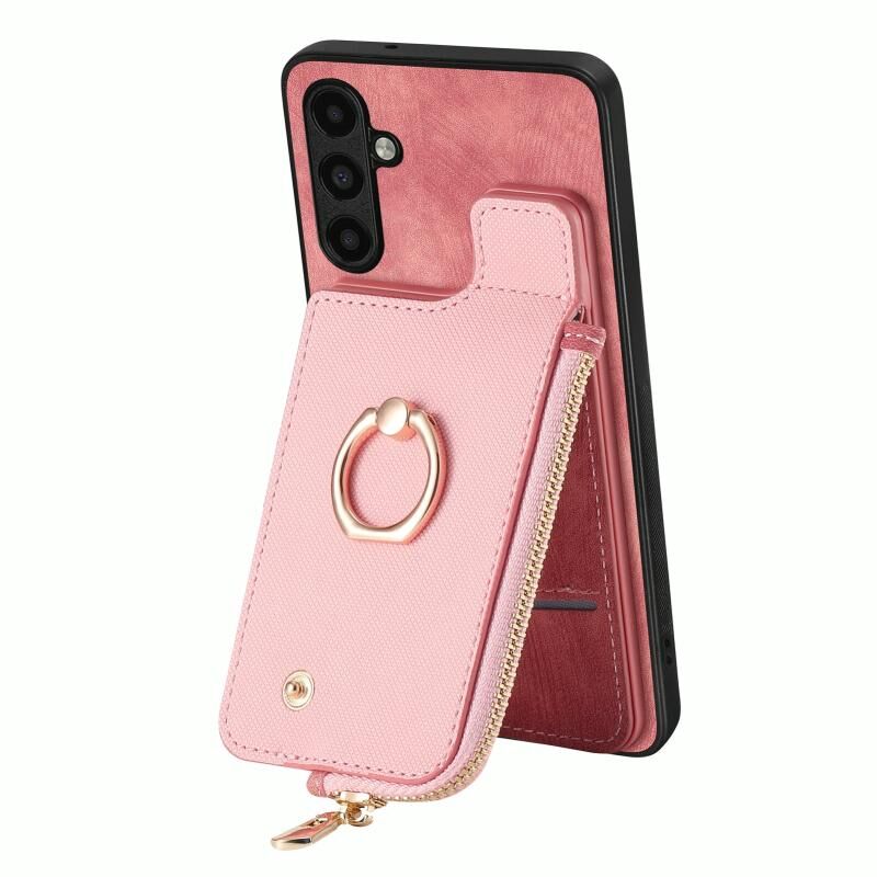 Για Samsung Galaxy A41 Cross Δερμάτινο δαχτυλίδι κάθετη φερμουάρ πορτοφόλι πίσω υπόθεση τηλεφώνου (ρόζ)