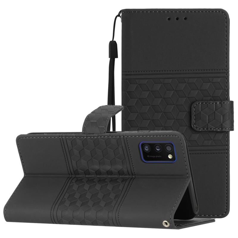 Για Samsung Galaxy A41 Diamond ανάγλυφο δέρμα αίσθηση δέρμα τηλέφωνο υπόθεση με κορδόνι (Μαύρο)