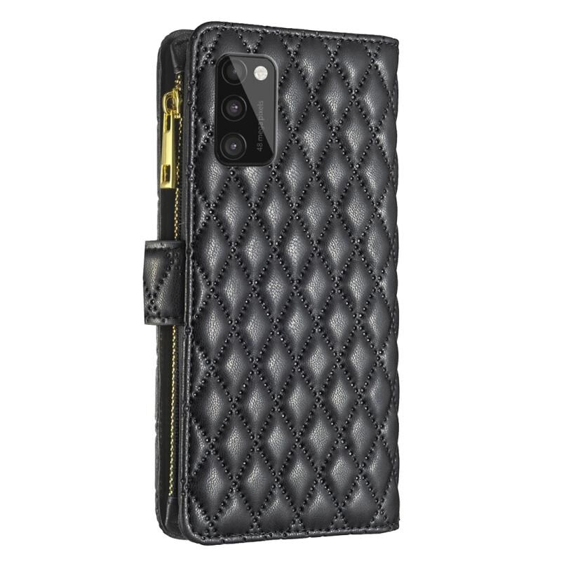 Θήκη για Samsung Galaxy A41, Δερμάτινη θήκη τύπου πορτοφολιού με φερμουάρ και σχέδιο διαμαντόπετρας (Μαύρο)