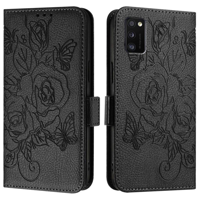 Για Samsung Galaxy A41 ανάγλυφο Rose RFID Anti-theft δερμάτινη θήκη τηλεφώνου (Μαύρο)