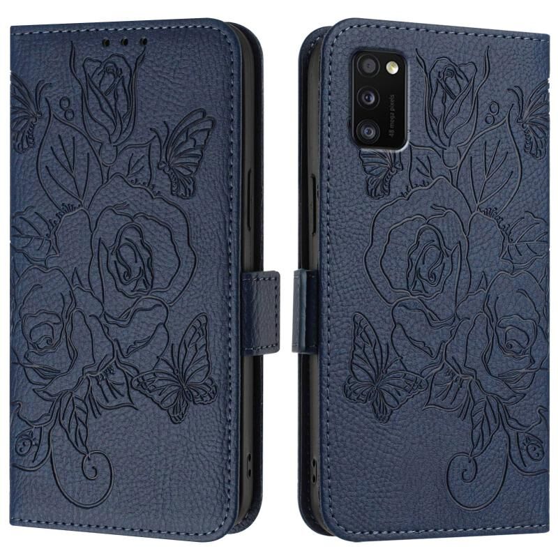 Για Samsung Galaxy A41 ανάγλυφο Rose RFID Anti-theft δερμάτινη θήκη τηλεφώνου (σκούρο μπλε)