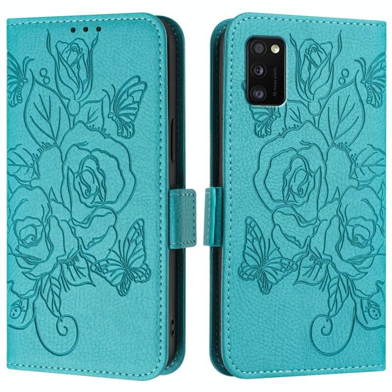 Για Samsung Galaxy A41 ανάγλυφο Rose RFID Anti-theft δερμάτινη θήκη τηλεφώνου (γαλάζιο)