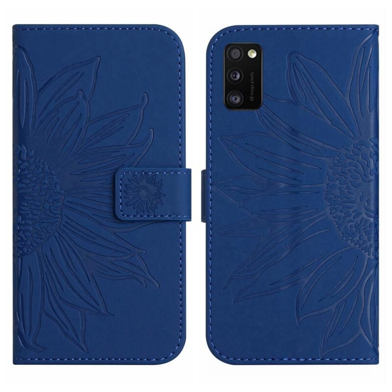 Για το Samsung Galaxy A41 EU Edition δέρμα αίσθηση Sun Flower μοτίβο Flip δέρμα τηλέφωνο υπόθεση με κορδόνι (σκούρο μπλε)