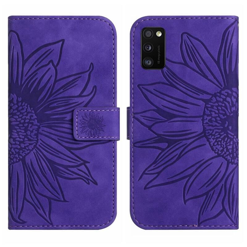 Για το Samsung Galaxy A41 EU Edition δέρμα αίσθηση Sun Flower μοτίβο Flip δέρμα τηλέφωνο υπόθεση με κορδόνι (σκούρο μωβ)