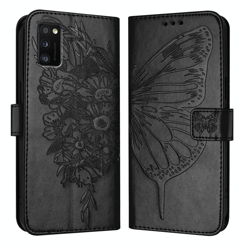 Για Samsung Galaxy A41 ΕΕ ανάγλυφη πεταλούδα δερμάτινη θήκη τηλεφώνου (μαύρο)