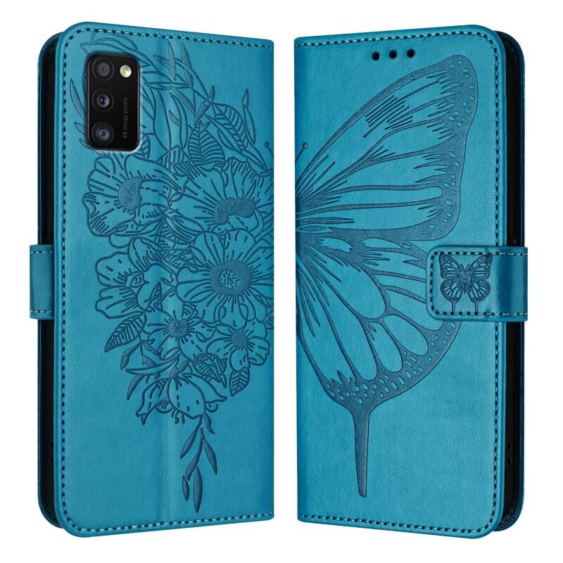 Για Samsung Galaxy A41 ΕΕ ανάγλυφη πεταλούδα δερμάτινη θήκη τηλεφώνου (μπλε)