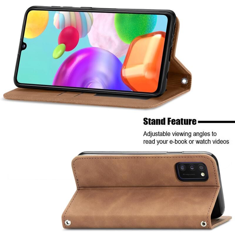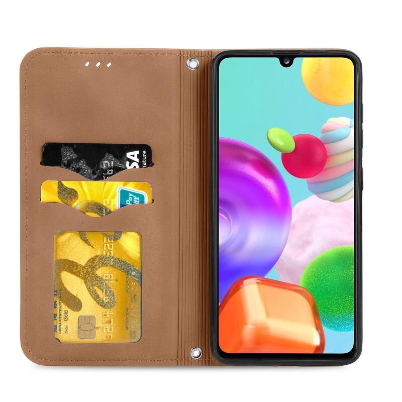 Για Samsung Galaxy A41 (EU) Retro Skin Feel Business μαγνητική οριζόντια Flip δερμάτινη θήκη με υποδοχές για κάρτες & πορτοφόλι & πλαίσιο φωτογραφιών (καφέ)