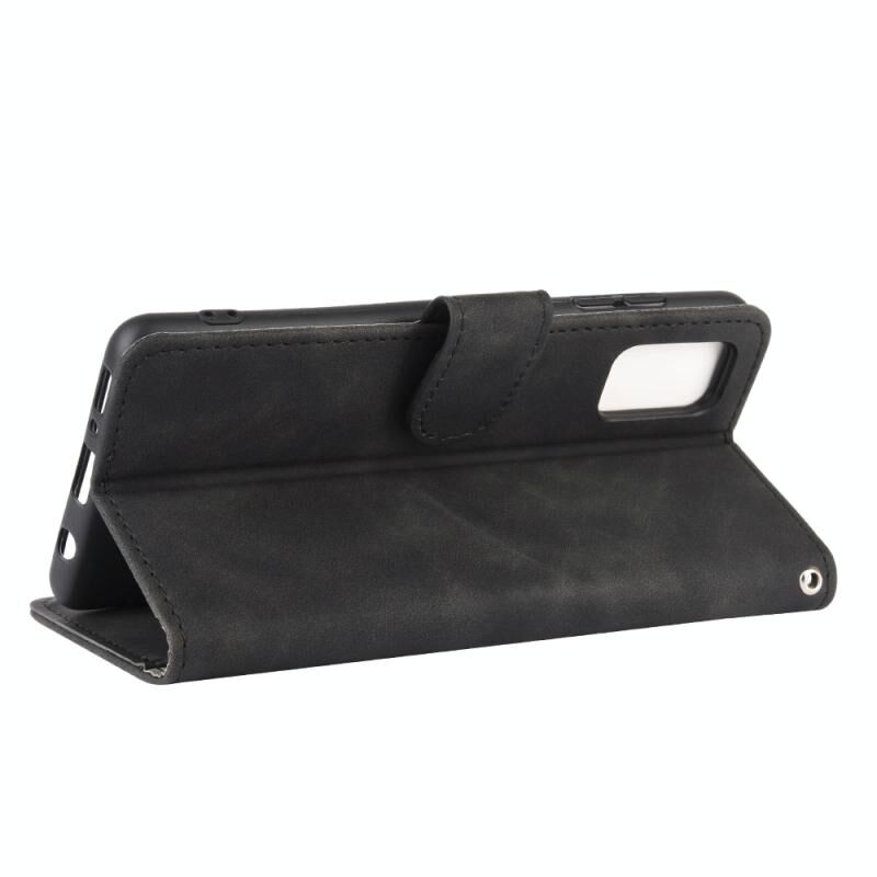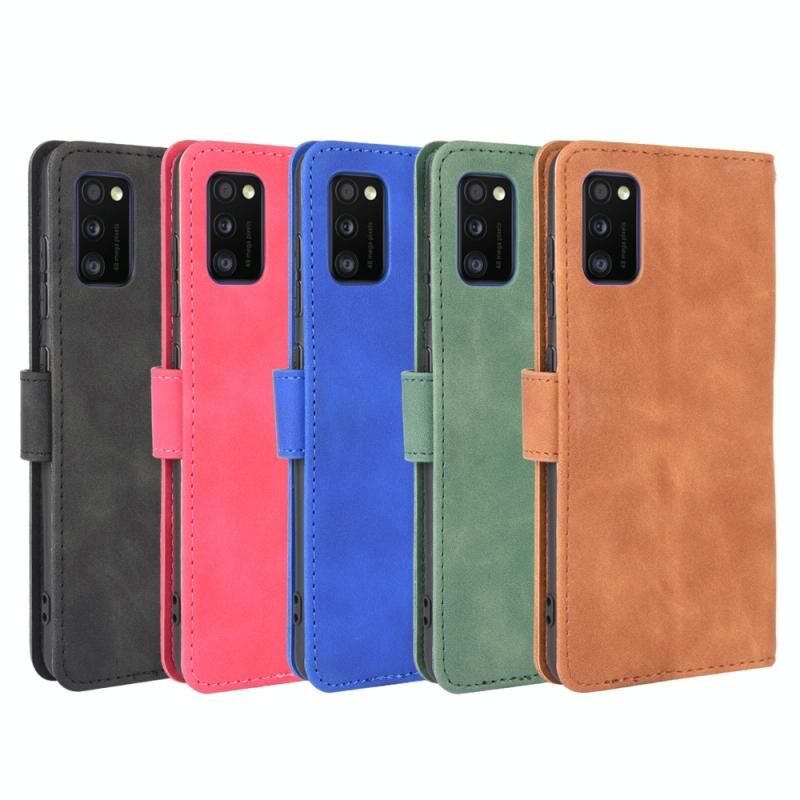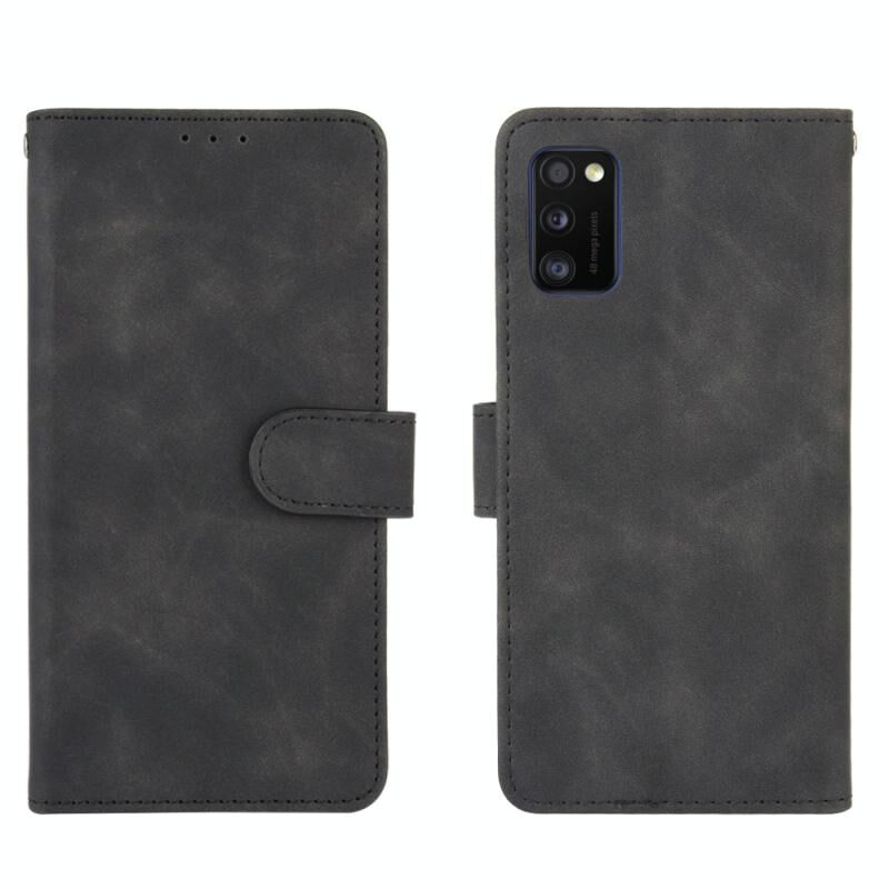 Θήκη για Samsung Galaxy A41 (Ευρασιατική Έκδοση) με Μαγνητικό Κούμπωμα, Οριζόντια, με Υφή Δέρματος Μοσχαριού, από Δέρμα PU, σε Μονόχρωμο Σχέδιο, με Θήκη & Θήκες Καρτών & Πορτοφόλι (Μαύρο)
