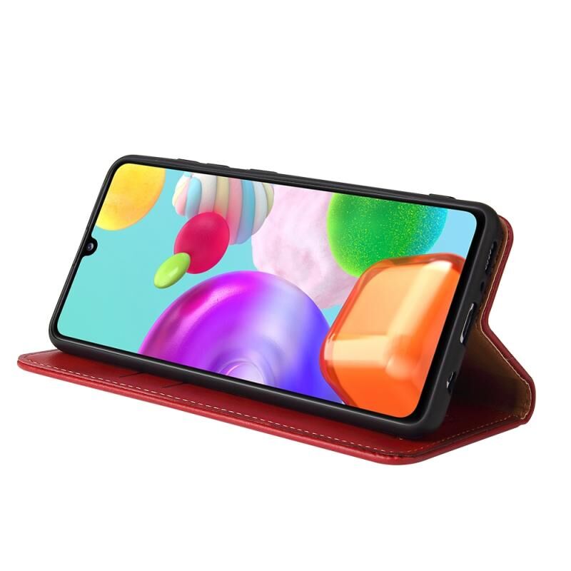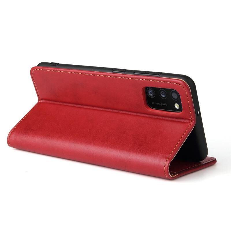 Θήκη Samsung Galaxy A41 Fierre Shann από Δερματίνη με Υφή, Οριζόντια, με Στήριξη & Θήκες για Κάρτες & Πορτοφόλι (Μαύρο) (Κόκκινο)