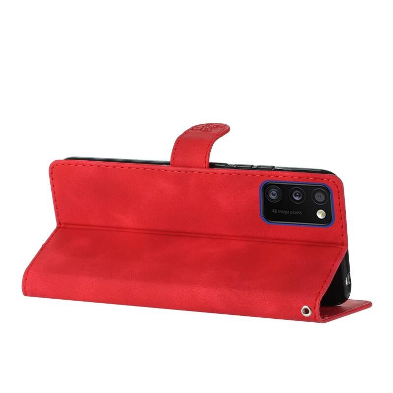 Για Samsung Galaxy A41 λουλούδι πεταλούδα ανάγλυφο μοτίβο δερμάτινη θήκη τηλεφώνου (Κόκκινο)