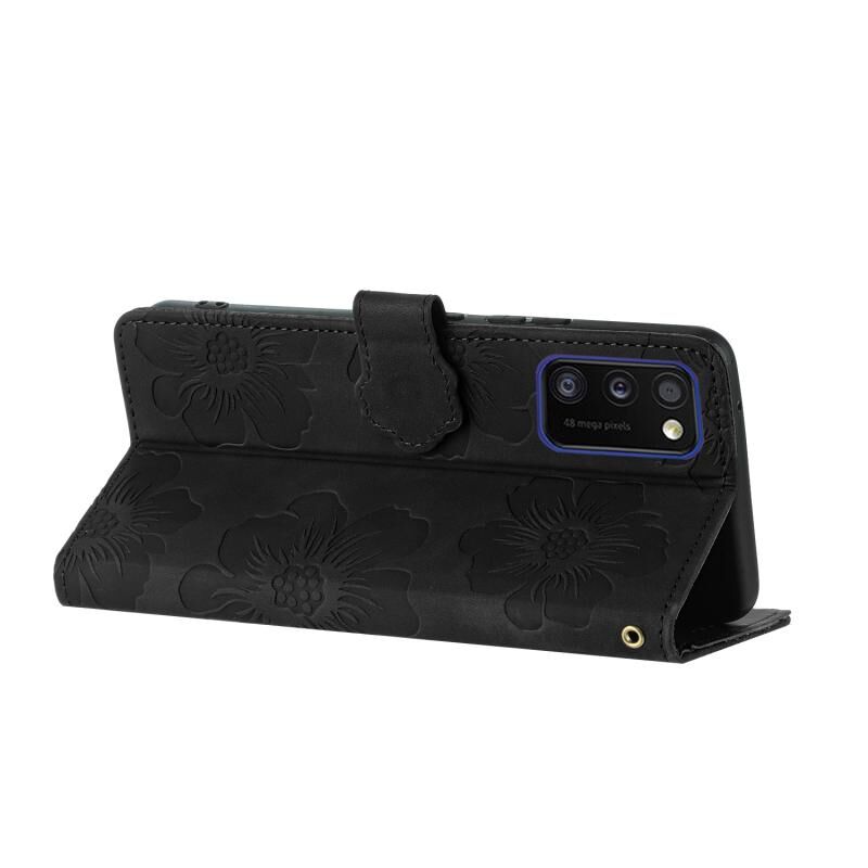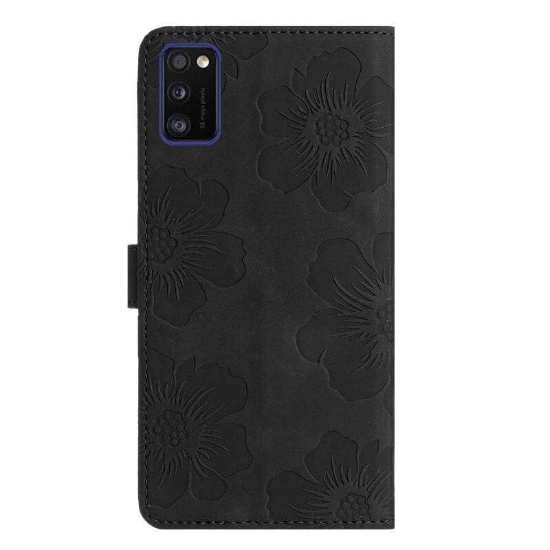 Για Samsung Galaxy A41 λουλούδι ανάγλυφο μοτίβο δερμάτινη θήκη τηλεφώνου (μαύρο)