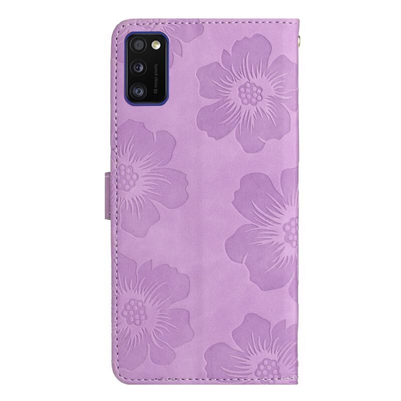 Για Samsung Galaxy A41 λουλούδι ανάγλυφο μοτίβο δερμάτινη θήκη τηλεφώνου (μωβ)