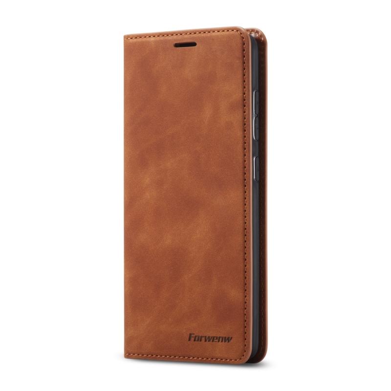 Για Samsung Galaxy A41 Forwenw Dream Series Θήκη Δέρματος Οριζόντιας Αναδίπλωσης με Δυνατό Μαγνητισμό και Λεπτή Περίμετρο, με Θήκη & Θήκες Καρτών & Πορτοφόλι & Κορνίζα Φωτογραφιών (Κόκκινο) (Καφέ)