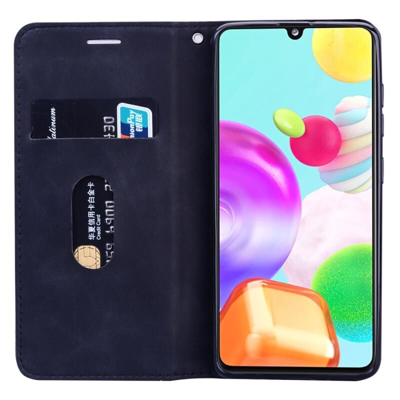 Για Samsung Galaxy A41 Frosted Business μαγνητική οριζόντια Flip PU δέρμα υπόθεση με θήκη & υποδοχή για κάρτες & κορδόνι (Μαύρο)