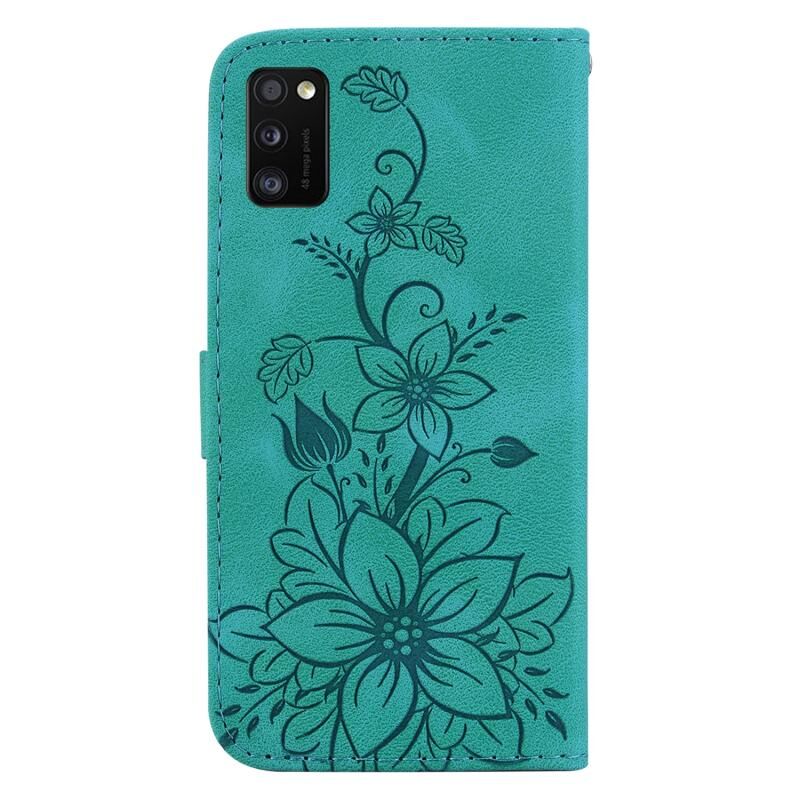 Θήκη τηλεφώνου Samsung Galaxy A41 Lily με ανάγλυφο δέρμα (Πράσινο)