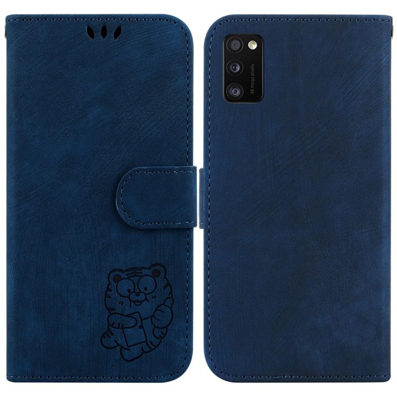 For Samsung Galaxy A41 Little Tiger Embossed Leather Phone Case(Dark Blue)