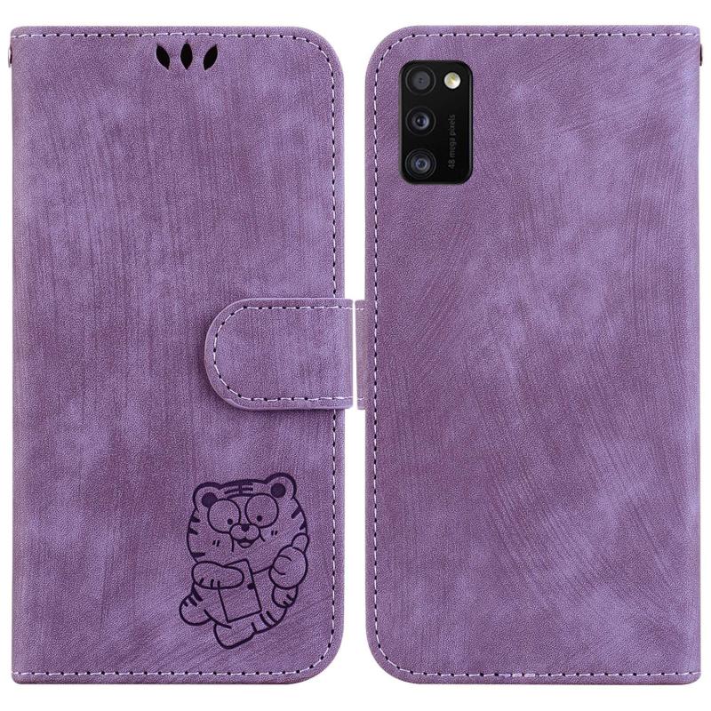 For Samsung Galaxy A41 Little Tiger Embossed Leather Phone Case(Purple)