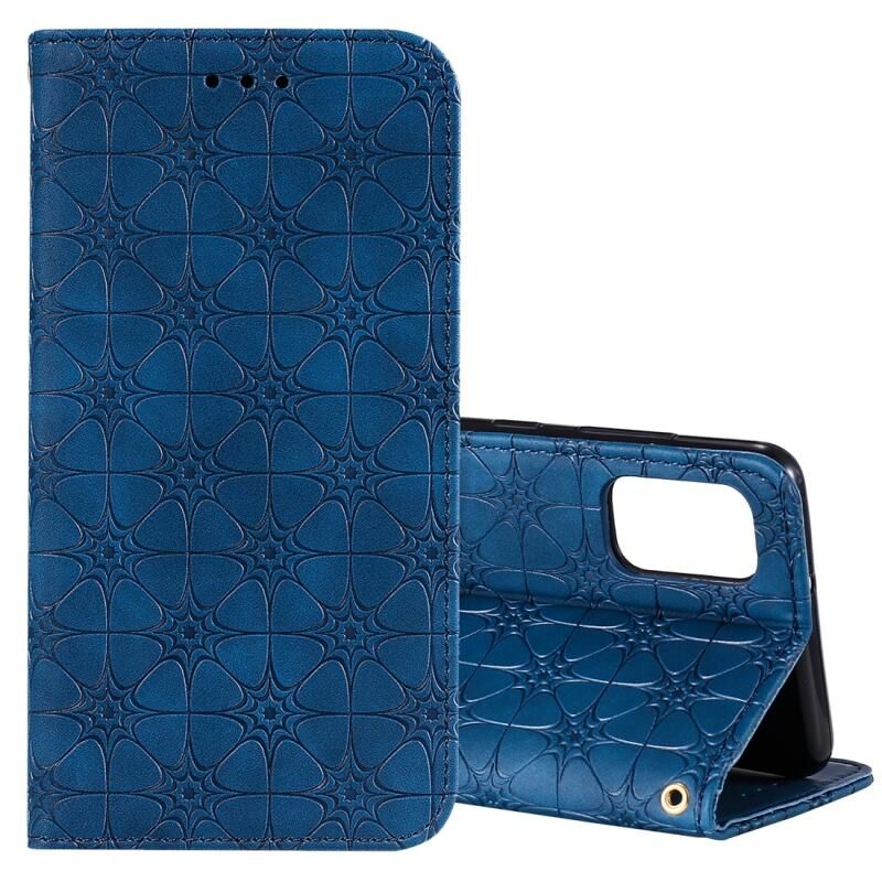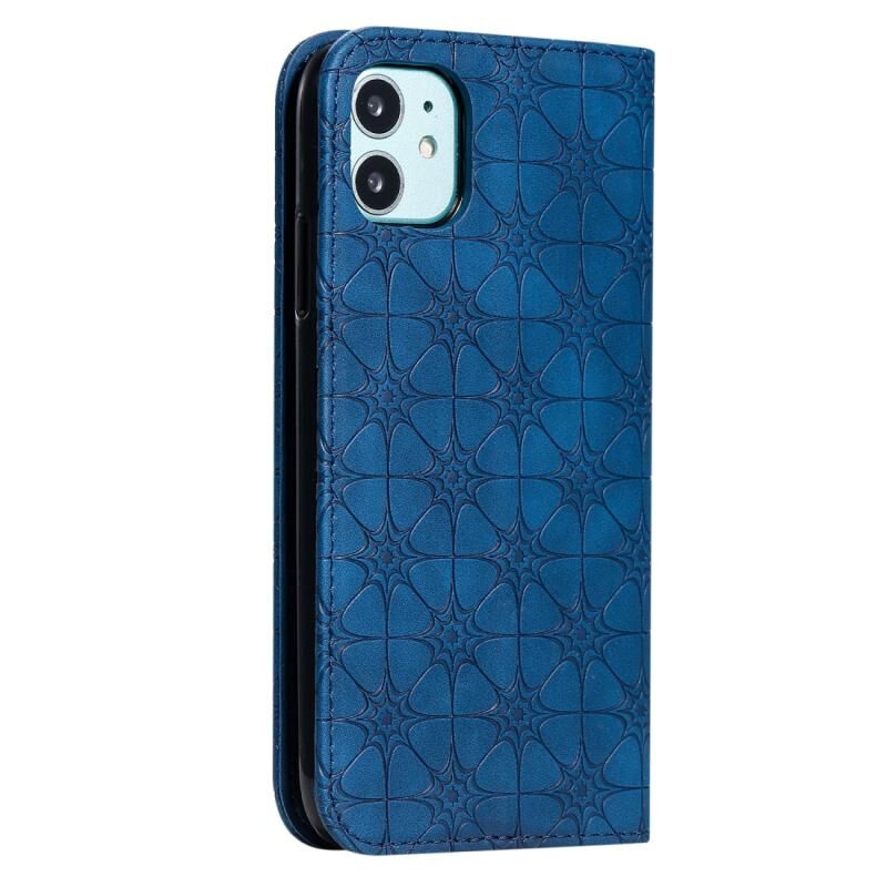 Θήκη Samsung Galaxy A41 με μαγνητικό κλείσιμο, δερμάτινη, οριζόντια, με ανάγλυφο σχέδιο λουλουδιών, βάση στήριξης & θήκες για κάρτες (Σκούρο Μπλε)