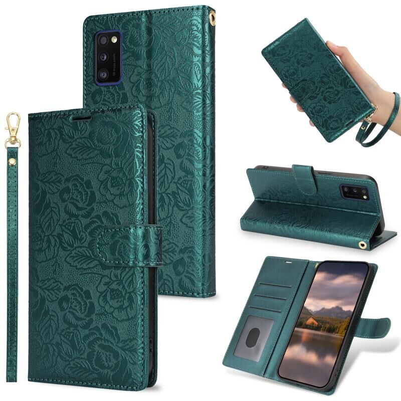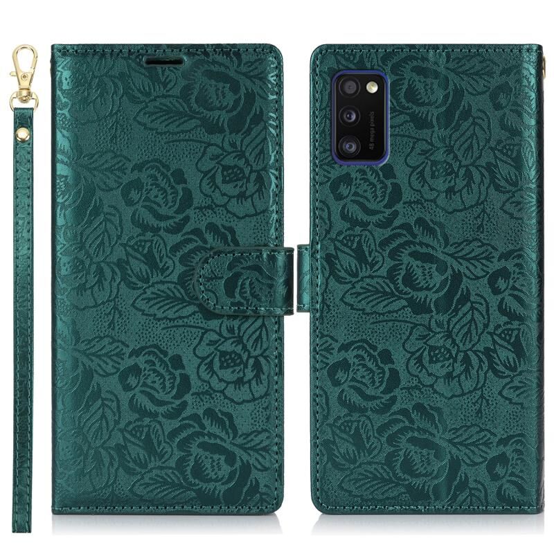 Θήκη τηλεφώνου Samsung Galaxy A41 από δέρμα με σχέδιο από παιώνιες (πράσινο)