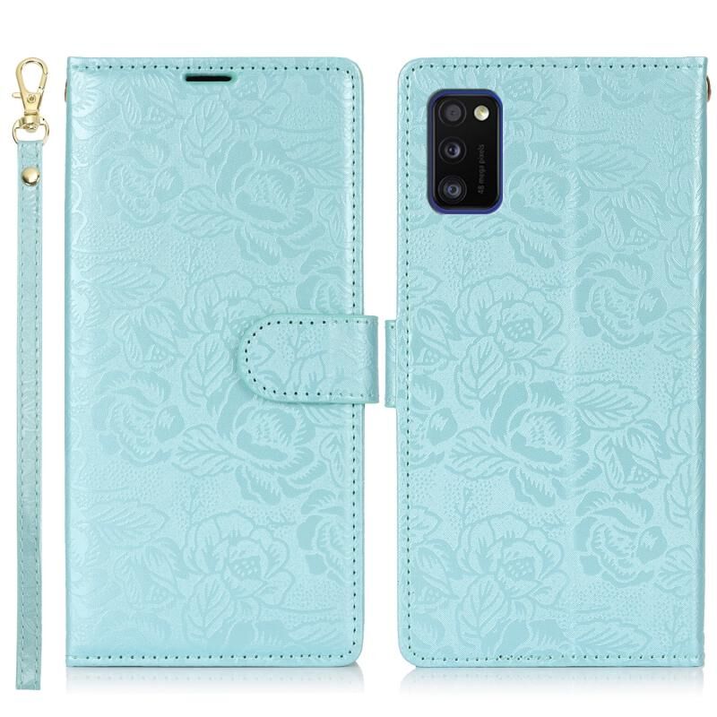 Θήκη τηλεφώνου Samsung Galaxy A41 από δέρμα με σχέδιο από παιώνιες (Πράσινο)