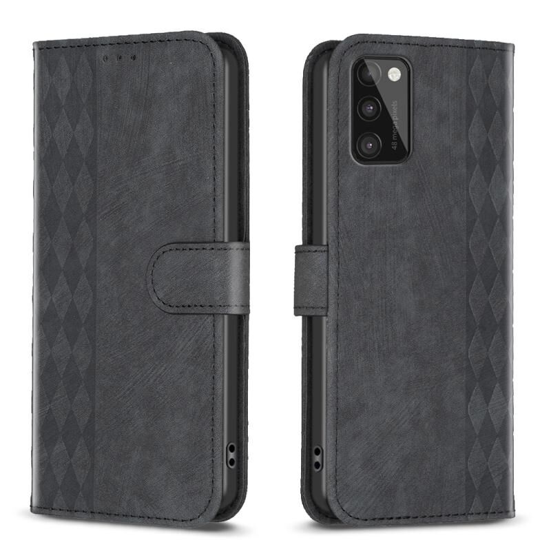 Για Samsung Galaxy A41 καρό ανάγλυφη δερμάτινη θήκη τηλεφώνου (μαύρο)