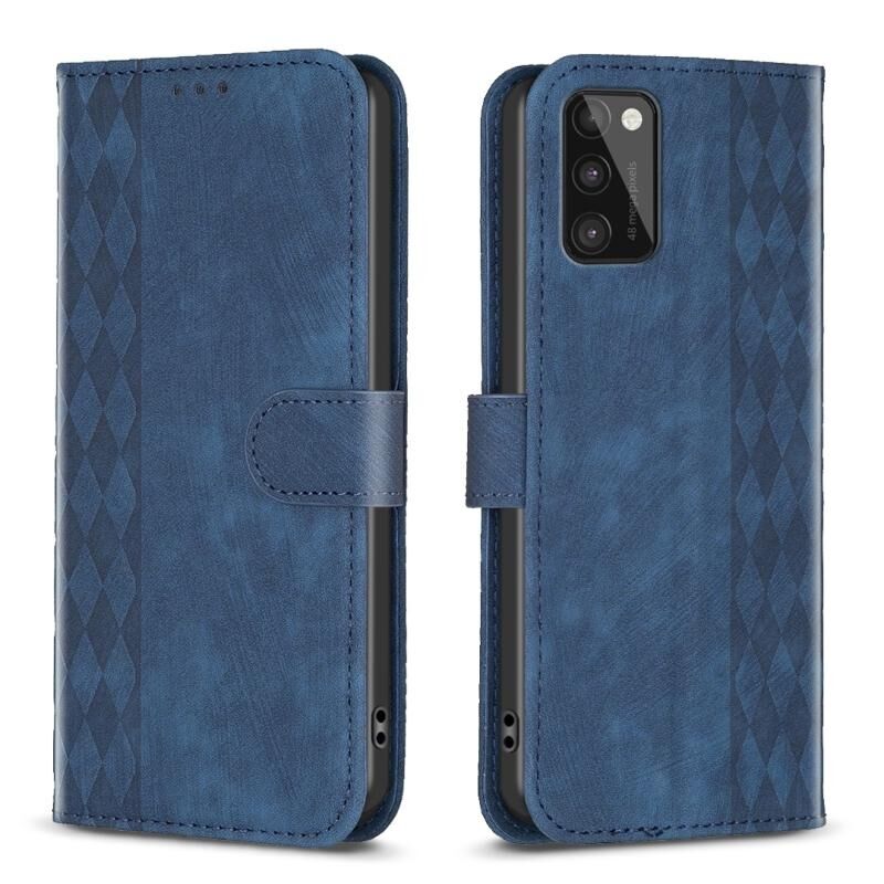 Για Samsung Galaxy A41 καρό ανάγλυφη δερμάτινη θήκη τηλεφώνου (μπλε)
