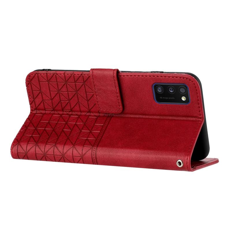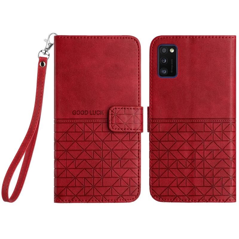 For Samsung Galaxy A41 Rhombic Texture Leather Phone Case with Lanyard(Red)