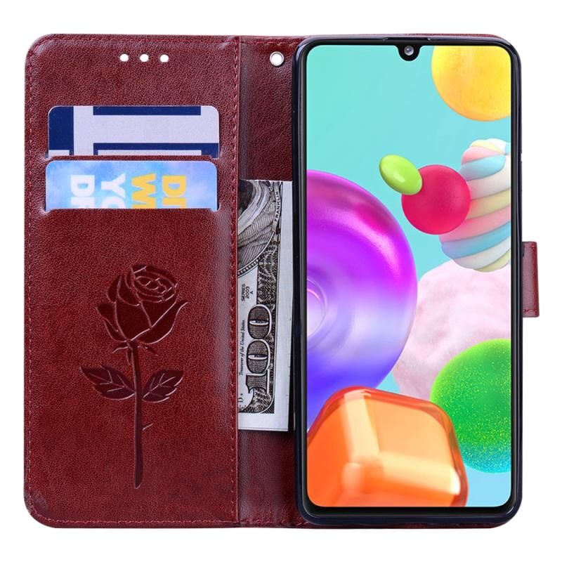 Θήκη Samsung Galaxy A41 Rose Embossed Οριζόντια Δερμάτινη PU με Θήκη & Θήκες Καρτών & Πορτοφόλι (Καφέ)