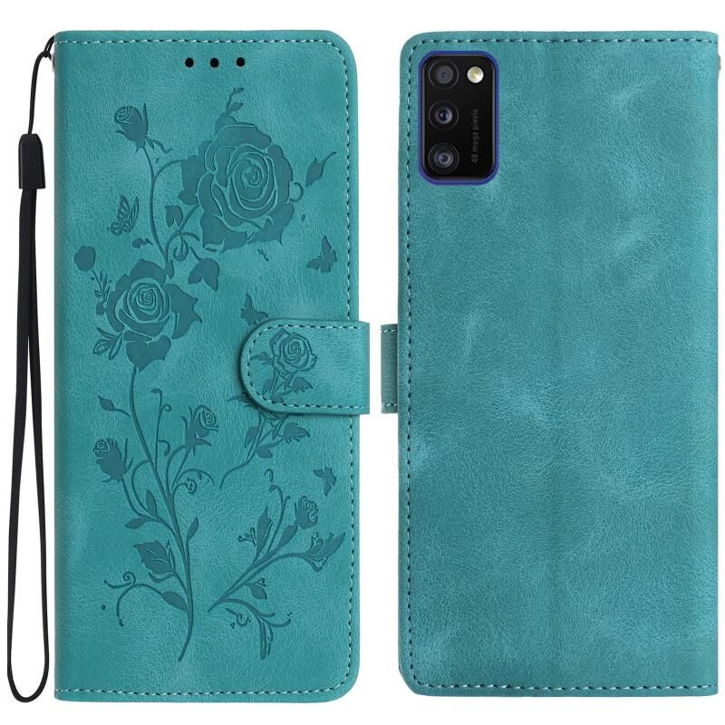 For Samsung Galaxy A41 Rose Flower Embossing Pattern Leather Phone Case(Green)