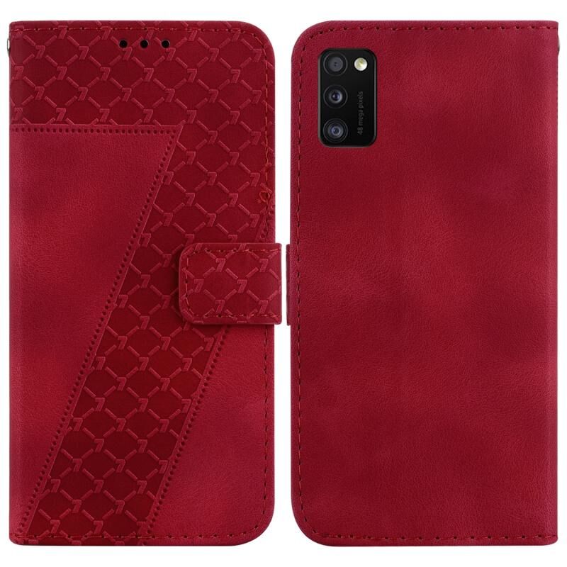 Θήκη τηλεφώνου από ανάγλυφο δέρμα σε σχήμα επτά για Samsung Galaxy A41 (Κόκκινο)