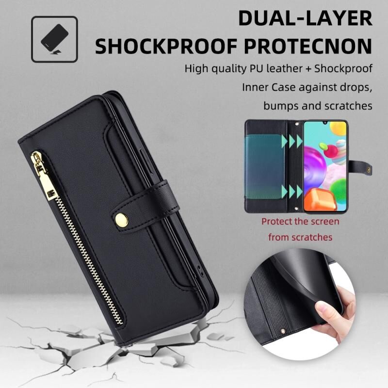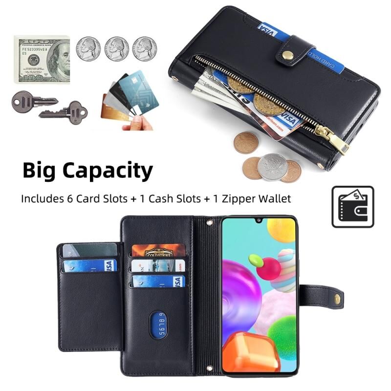 2. Λειτουργία πορτοφολιού πολλαπλών καρτών: Θήκες για κάρτες και διαμέρισμα με φερμουάρ για την αποθήκευση των πιστωτικών σας καρτών, μετρητών ή μικρών σημειώσεων για καθημερινή χρήση.