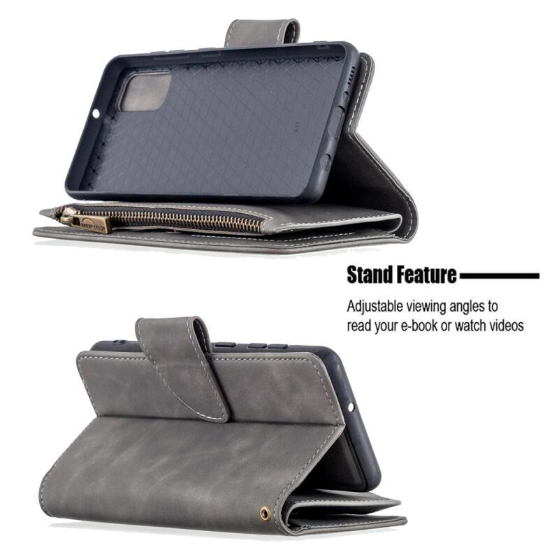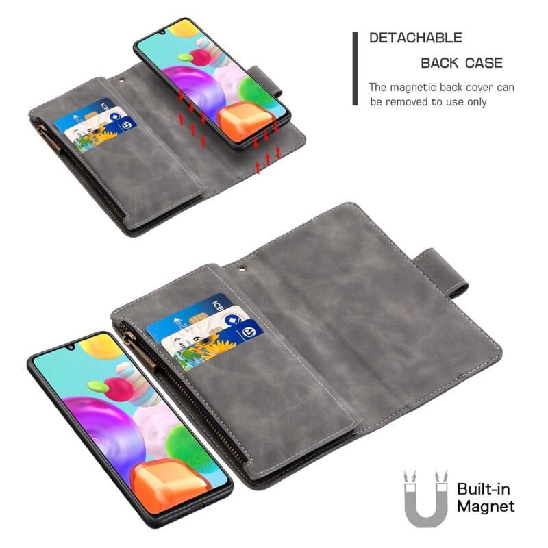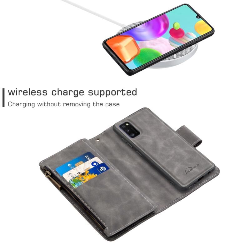 Για Samsung Galaxy A41 Skin Feel Αποσπώμενο μαγνητικό φερμουάρ Οριζόντια Flip PU δερμάτινη θήκη με υποδοχές πολλαπλών καρτών & θήκη & πορτοφόλι & κορνίζα & κορδόνι (γκρι)