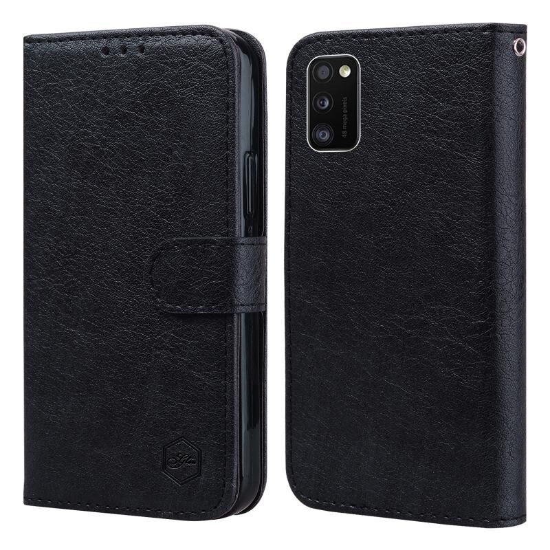 Θήκη κινητού τηλεφώνου Samsung Galaxy A41 με υφή δέρματος λάδι και PU + TPU (Μαύρο)