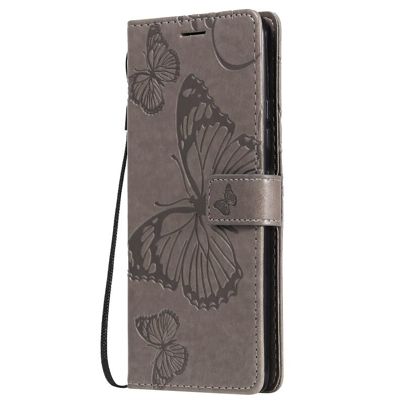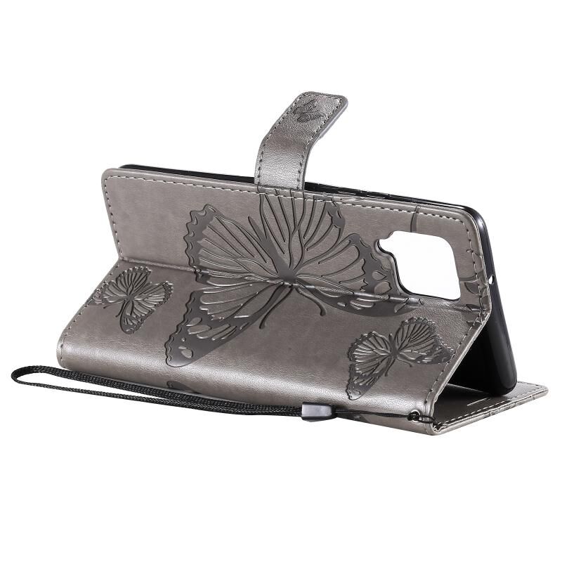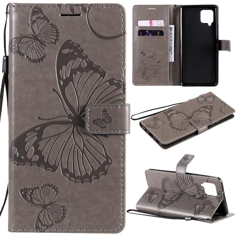 Θήκη Samsung Galaxy A42 5G 3D Πεταλούδες Embossing, Οριζόντια Δερμάτινη με Θήκη & Υποδοχή Κάρτας & Πορτοφόλι (Γκρι)