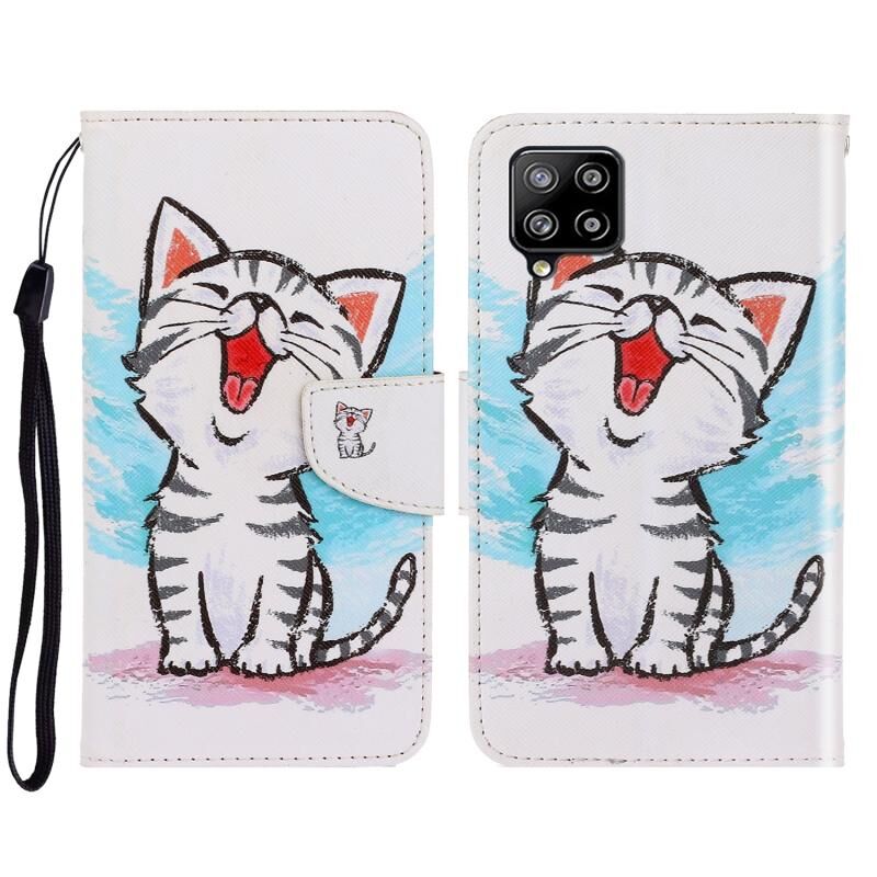 Θήκη τηλεφώνου Samsung Galaxy A42 5G 3D με έγχρωμο σχέδιο, οριζόντια αναδιπλούμενη από δέρμα με βάση στήριξης & θήκες για κάρτες & πορτοφόλι (Κόκκινο Στόμα Γάτας)
