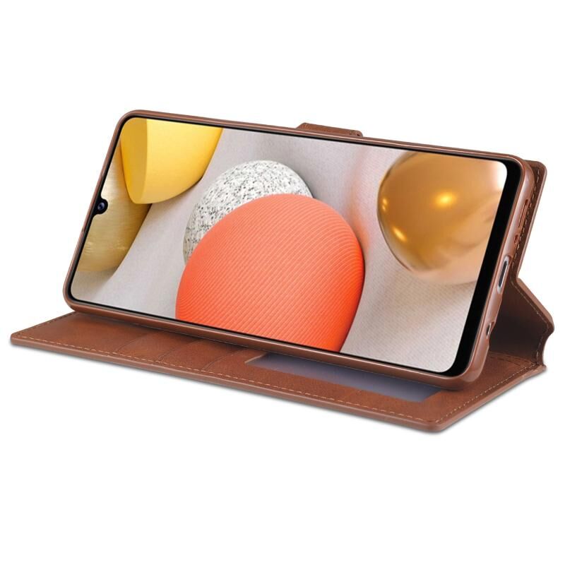 Θήκη δέρματος οριζόντιας αναδίπλωσης με υφή μοσχαριού για Samsung Galaxy A42 5G AZNS με βάση & υποδοχές καρτών & πορτοφόλι & κορνίζα φωτογραφιών (Καφέ) (Καφέ)