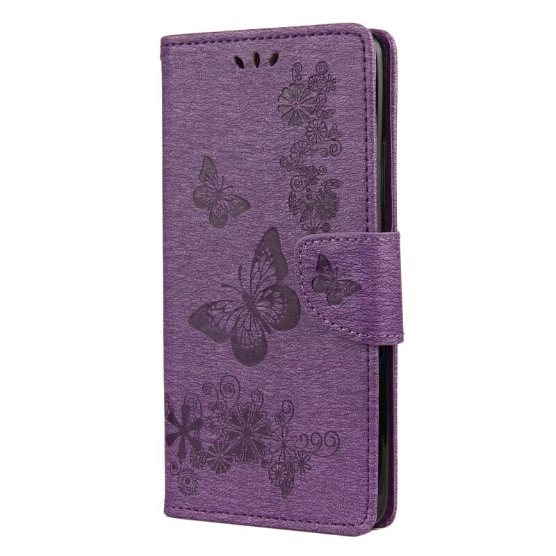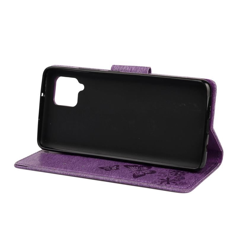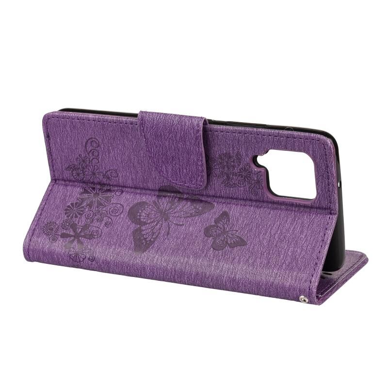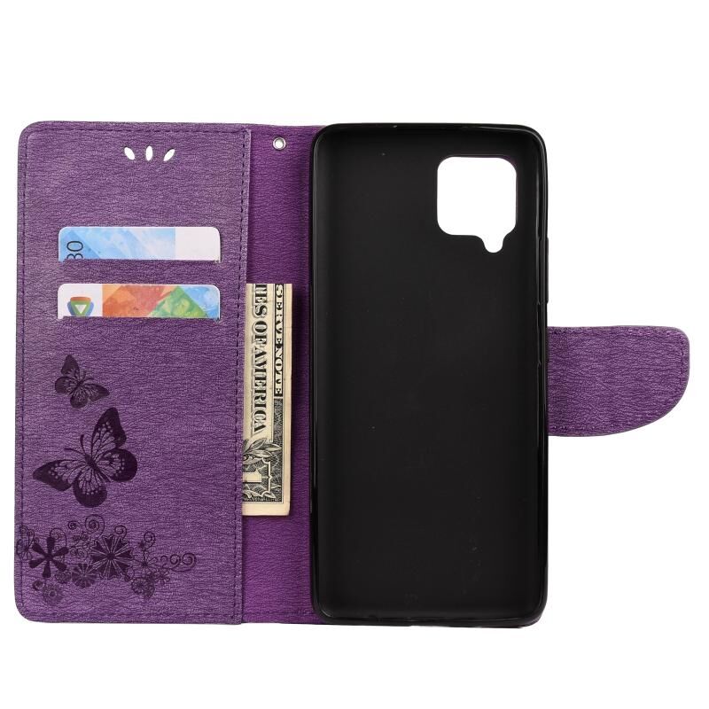 Θήκη Samsung Galaxy A42 5G με ανάγλυφο σχέδιο πεταλούδων, οριζόντια, από δέρμα με βάση στήριξης & θήκες για κάρτες & πορτοφόλι (Μαύρο)
