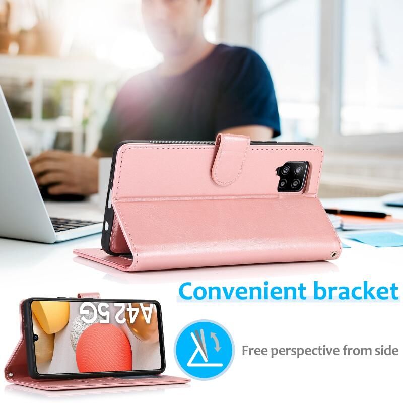 Για Samsung Galaxy A42 5G Calf Texture 2 σε 1 Αποσπώμενο μαγνητικό πίσω κάλυμμα Οριζόντια Flip δερμάτινη θήκη με θήκη & υποδοχές για κάρτες & πορτοφόλι & κορνίζα φωτογραφιών (Ροζ χρυσός)