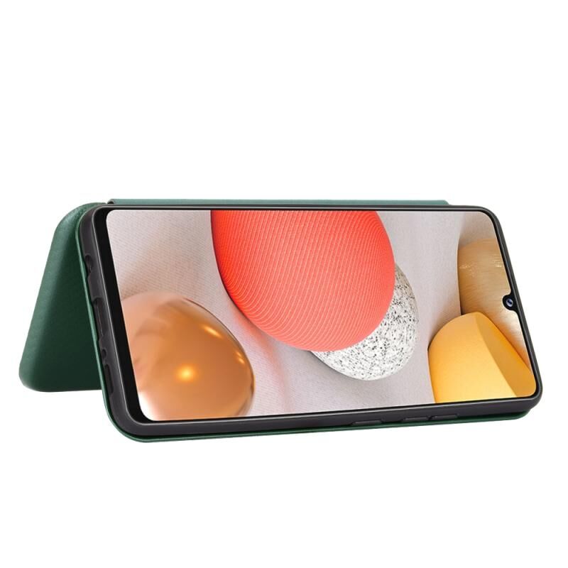 Θήκη για Samsung Galaxy A42 5G με υφή ανθρακονήματος, οριζόντια, αναδιπλούμενη από TPU + PC + Δερματίνη PU με θήκη για κάρτες (πράσινο)