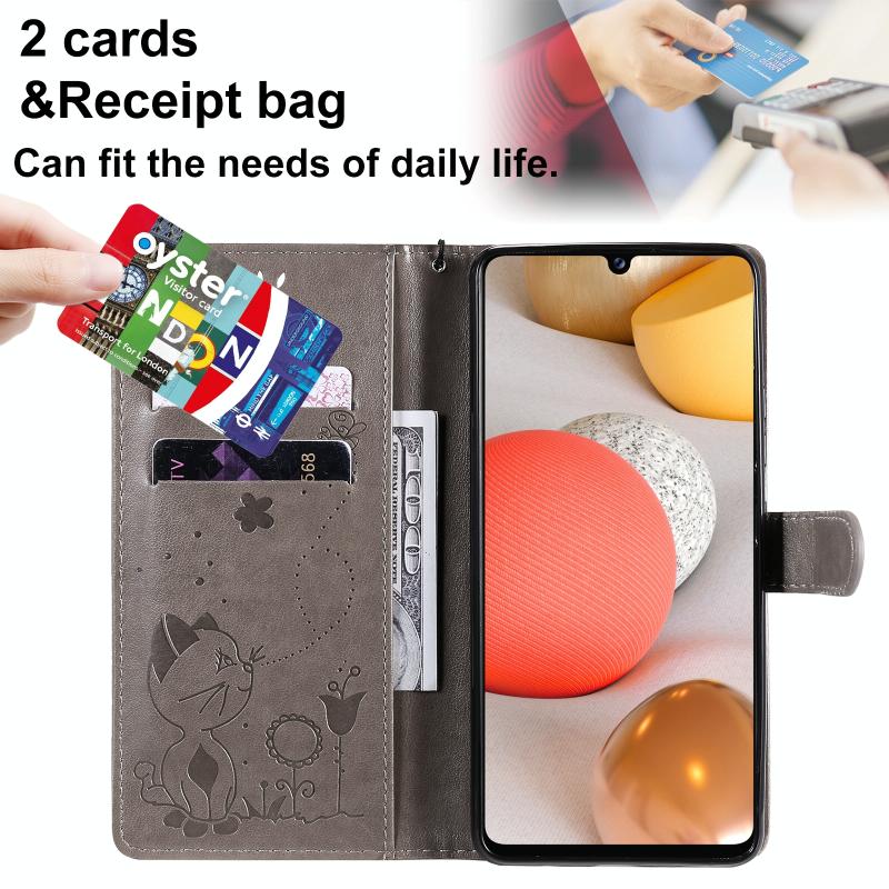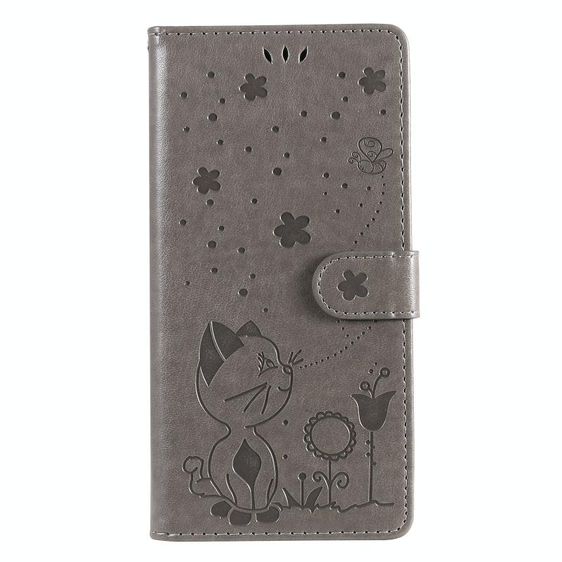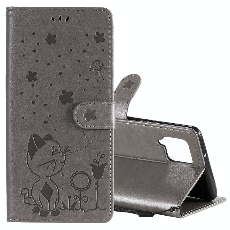 For Samsung Galaxy A42 5G Cat Bee Embossing Pattern Shockproof Horizontal Flip Leather Case with Holder & Card Slots & Wallet(Grey)