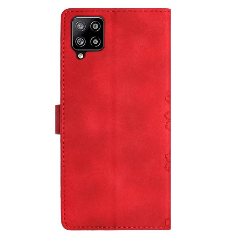 Θήκη τηλεφώνου Samsung Galaxy A42 5G Cherry Blossom Butterfly με ανάγλυφο PU υφή δέρματος (Κόκκινο)