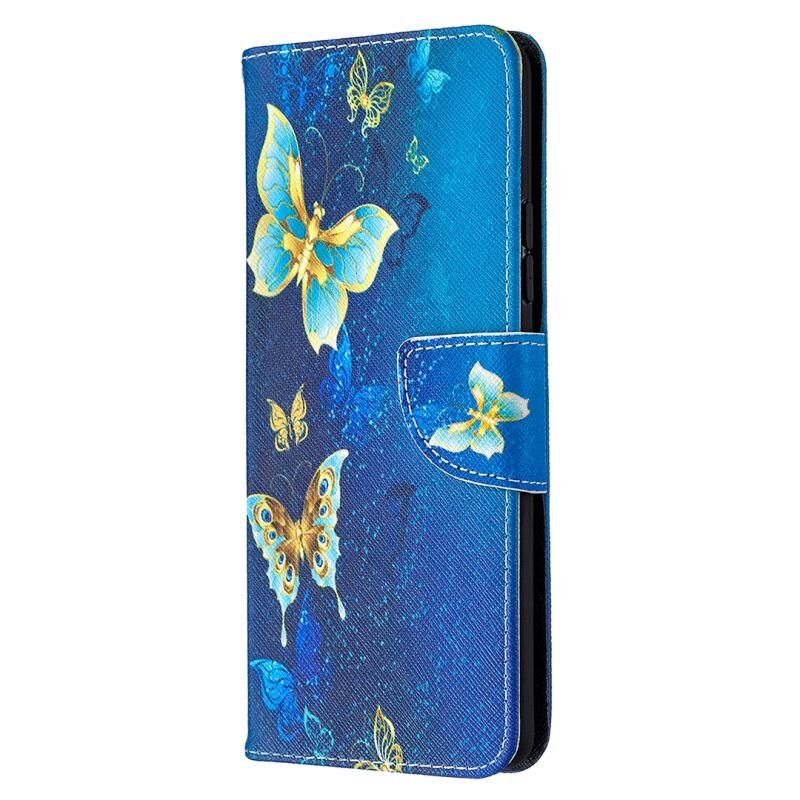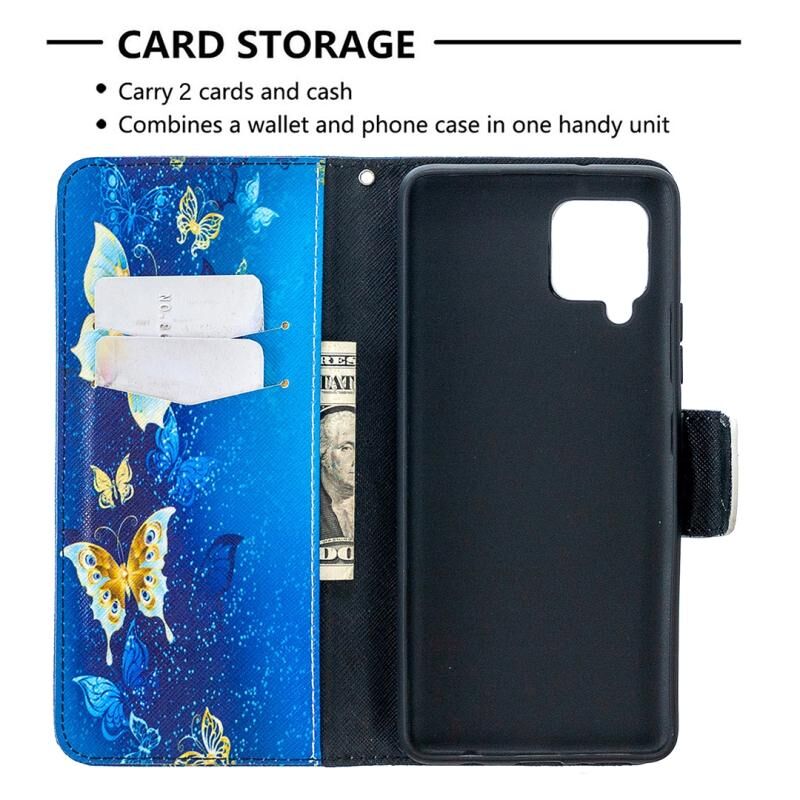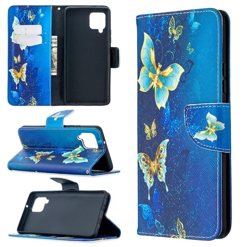 Θήκη δέρματος οριζόντιας αναδίπλωσης με σχέδιο ζωγραφικής και χρώματα για Samsung Galaxy A42 5G με βάση στήριξης & υποδοχές καρτών & πορτοφόλι (Χρυσή Πεταλούδα)