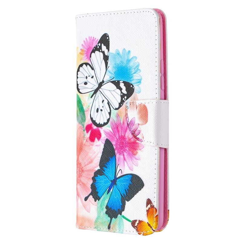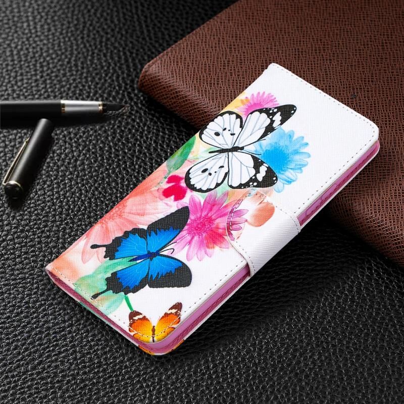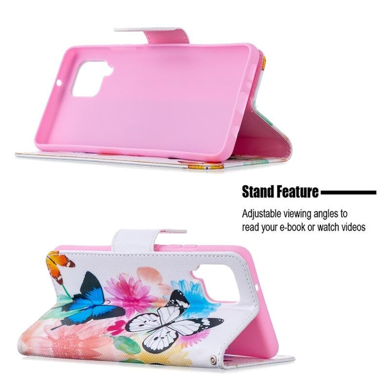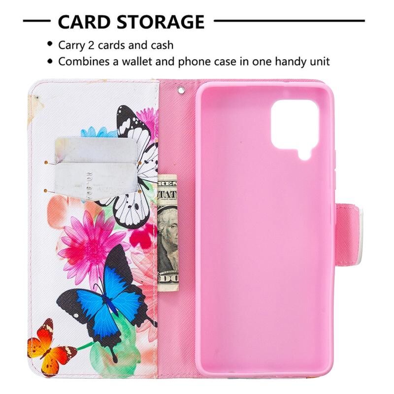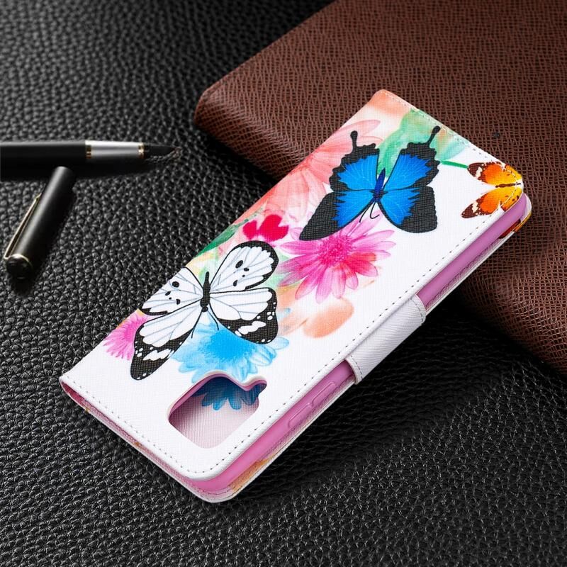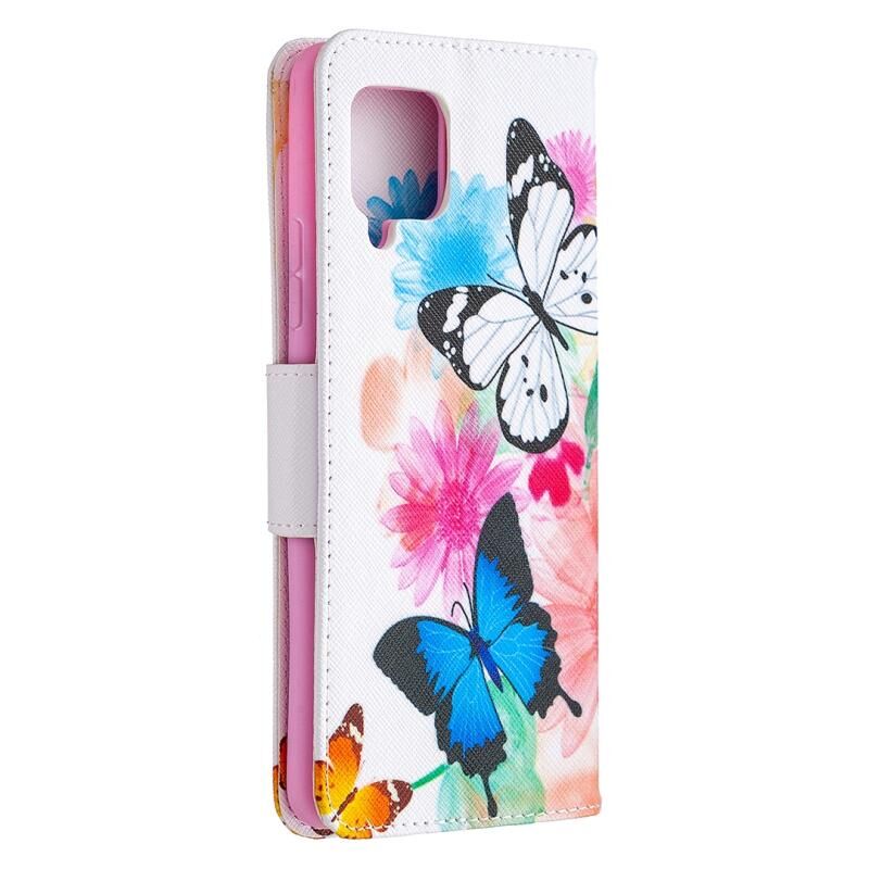 Θήκη δέρματος οριζόντιας αναδίπλωσης με σχέδιο ζωγραφικής και χρώματα για Samsung Galaxy A42 5G με βάση στήριξης & υποδοχές καρτών & πορτοφόλι (Πεταλούδες)