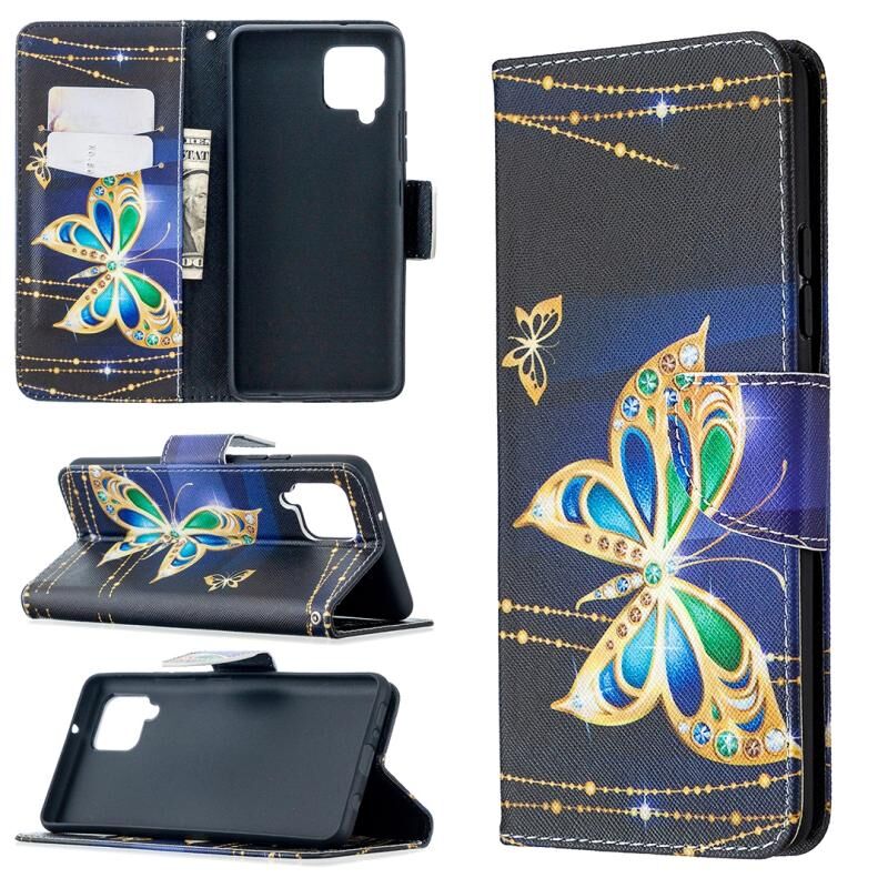 Θήκη δέρματος οριζόντιας αναδίπλωσης με σχέδιο ζωγραφικής και χρώματα για Samsung Galaxy A42 5G με βάση στήριξης & υποδοχές καρτών & πορτοφόλι (Χρυσή Πεταλούδα)