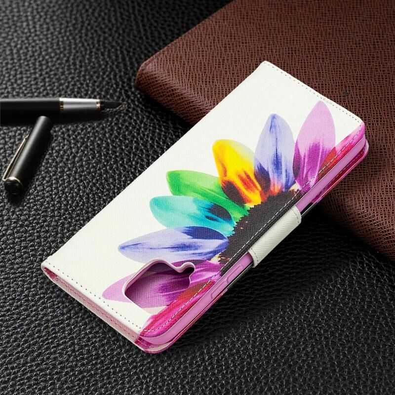 Θήκη δέρματος οριζόντιας αναδίπλωσης με σχέδιο πολύχρωμης ζωγραφικής για Samsung Galaxy A42 5G με βάση & υποδοχές καρτών & πορτοφόλι (Ηλίανθος)