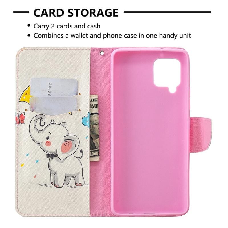 Θήκη δέρματος οριζόντιας αναδίπλωσης με σχέδιο πολύχρωμης ζωγραφικής για Samsung Galaxy A42 5G με βάση & υποδοχές καρτών & πορτοφόλι (Ομπρέλα Ελέφαντας)