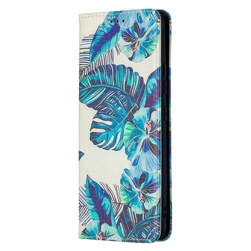 Θήκη Samsung Galaxy A42 5G με πολύχρωμο σχέδιο, αόρατο μαγνητικό, οριζόντιο flip από δερματίνη PU με βάση & θήκες για κάρτες & πορτοφόλι (Μπλε Φύλλο)